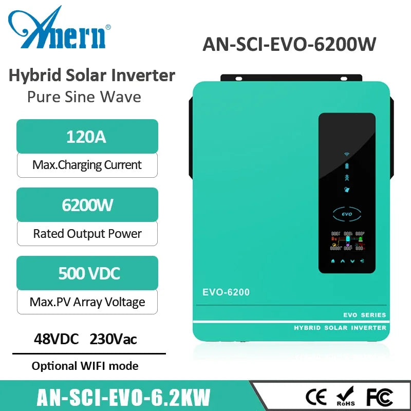 6.2KW 3.6KW 1.6KW Hybrid Solar Inverter 230V Off Grid Solar Inverter 24V 48V MPPT 120A Charge Controller Max PV 450Vdc with WIFI